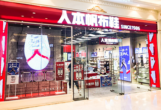 2012年人本商標(biāo)被行政認(rèn)定為中國(guó)馳名商標(biāo),迄今線下門店已經(jīng)突破1000家,每年賣出帆布鞋1000多萬雙!